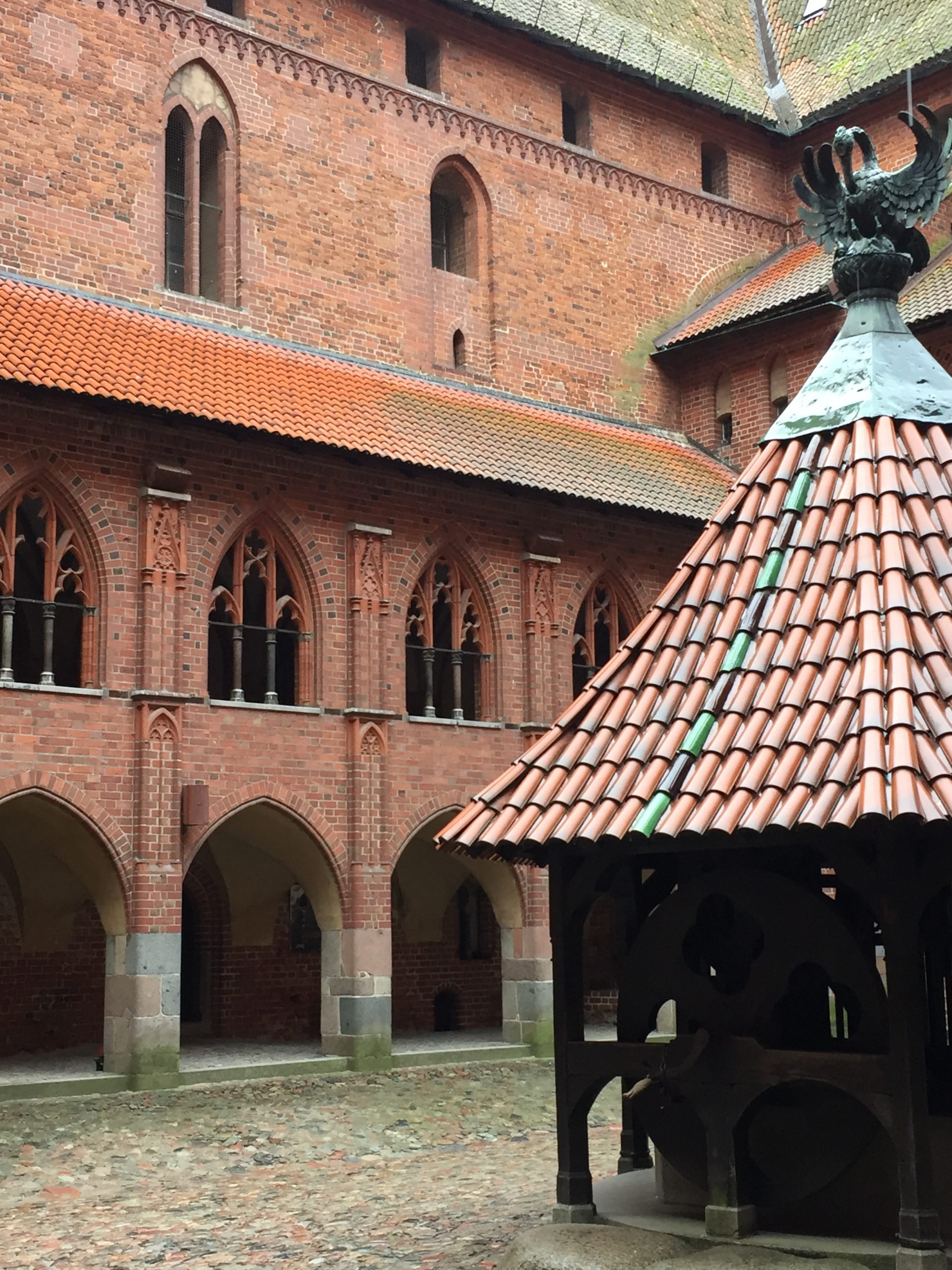 Eine Autostunde von Danzig entfernt begeistert mich immer wieder die riesige, backsteinrote Burganlage der Marienburg, zentraler Herrschaftssitz des Deutschen Ritterordens. Dieser wurde von pommerschen Adligen ins Land geholt, um die heidnischen Pruzzen oder Preußen zwangsweise zu missionieren und dafür Land als Lohn übereignet bekamen, den Ordensstaat Preußen.